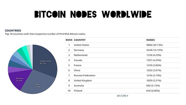 Each full node has the entire Bitcoin blockchain stored, thus another node means another copy of the Bitcoin ledger and a further distribution of the Bitcoin code. The more individual copies exist and the wider those copies are spread around the globe, the harder it is to turn Bitcoin off: 43,668 Bitcoin nodes (reachable and unreachable) are running around the globe right now.