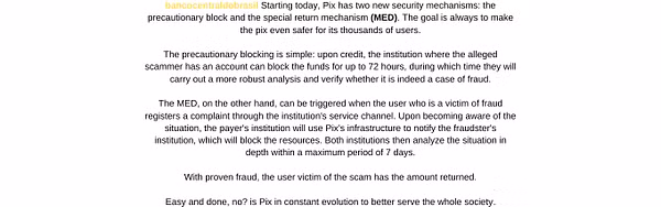 Let's look at the case of PIX, which was recently implemented in Brazil. When I receive a PIX payment, can I say that a payment was actually made and that I own the money I received? Let's see what the new statement from the Central Bank says: