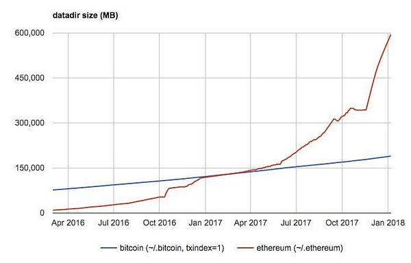 This graph below shows how Ethereum tends to demand more and more powerful computers, with greater capacity and more expensive to run your own node at home, just to check the network and not receive anything in return. That's why most of the ethereum nodes and other cryptocurrencies are located in datacenters centralizing the hardware structure of the network. The code was written in a way that restricts the decentralization of the network.