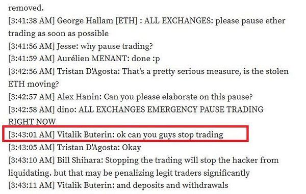 The irony of it all is Vitalik's speech asking people to stop trading on exchanges so that they could contain the hacker.