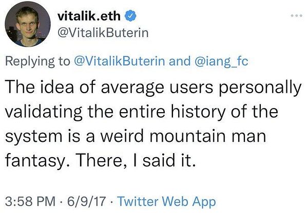 This centralization in datacenters is a reflection of Vitalik's initial posture, which in the past disdained the need for users to run their own node. But that's just another point on which he also changed his mind later on.