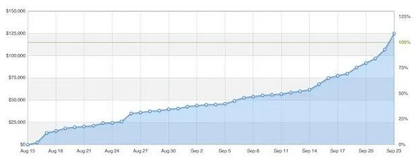 The graph should behave more like crowdfunding images on Kickstarter, like the one in blue below, with demand fluctuations that are natural to the process.