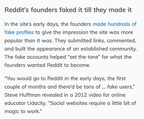 We are past this frozen start period. There's enough real activity that there isn't a point to astroturfing. We just need to continue adding more value.