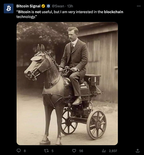 "Blockchain not Bitcoin" makes me gag a little. And admittedly, I remember saying this same thing to one of my friends back when I first started learning things. Had no clue what i was saying lol.