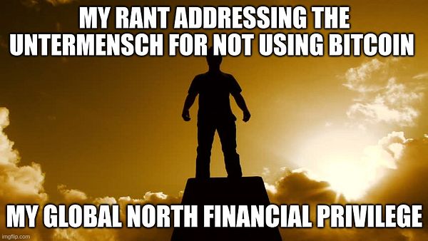 Wait until you learn just how much the first world needs bitcoin... you can only see how bad the global south has it because you have a reference frame, but you cannot begin to imagine that which is lost in the "first world" due to fiat.