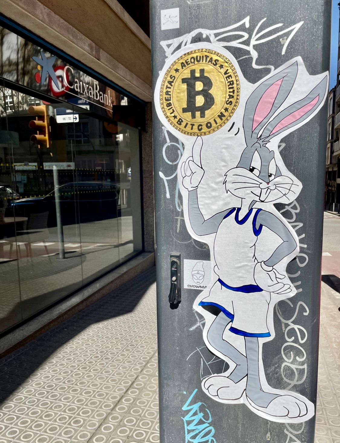 It's not all political motivations for Street Cyber's street art. They also appeal to cartoon lovers by promoting the Bitcoin token through characters like Buggs Bunny.