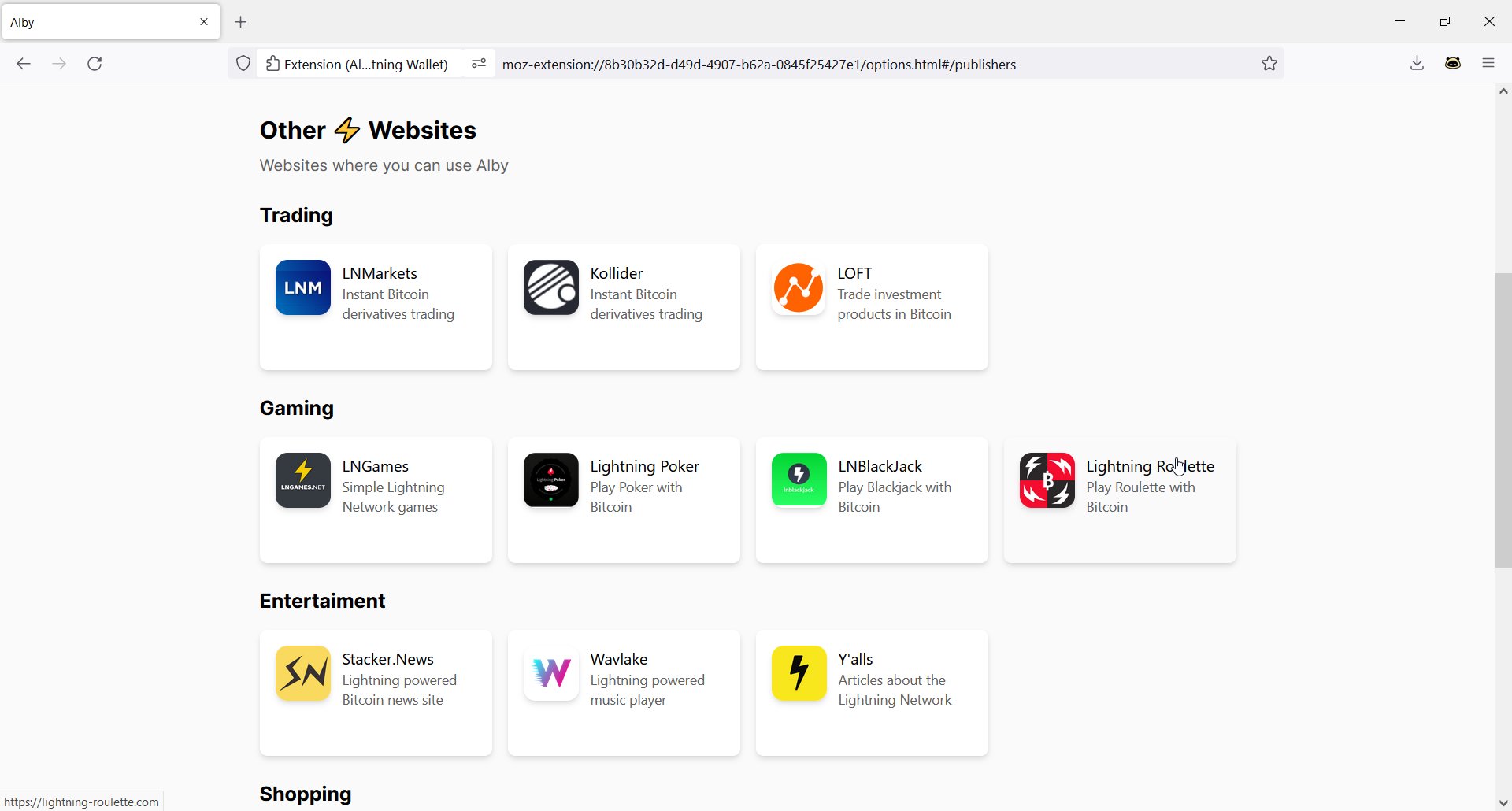 Default shortcut command: You can now open Alby with the shortcut: Alt+Shift+A / Option+Shift+A(mac) @Kodylow (#842)