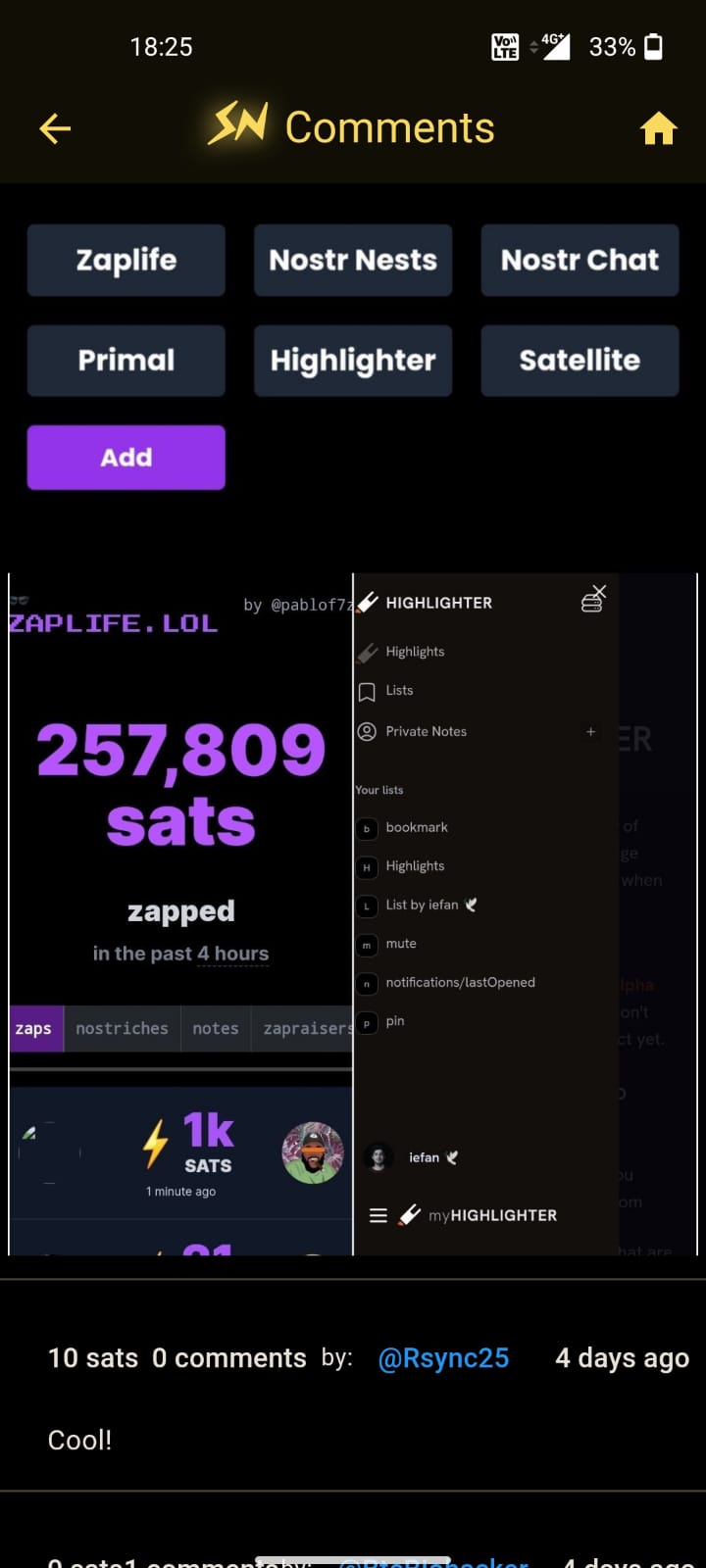 The screenshot you pointed is showing a comment someone have written. We don't have any Nostr feature yet but when I start integrating it I'll probably use some library like dart-nostr or something similar.
