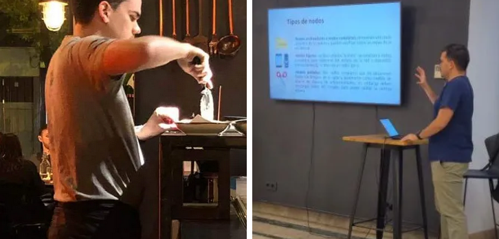 https://m.stacker.news/5092 Me cutting a pizza in the restaurant I used to work at (April 2019) /// Me giving a talk about Bitcoin, Lightning, and homemade servers (September 2023).