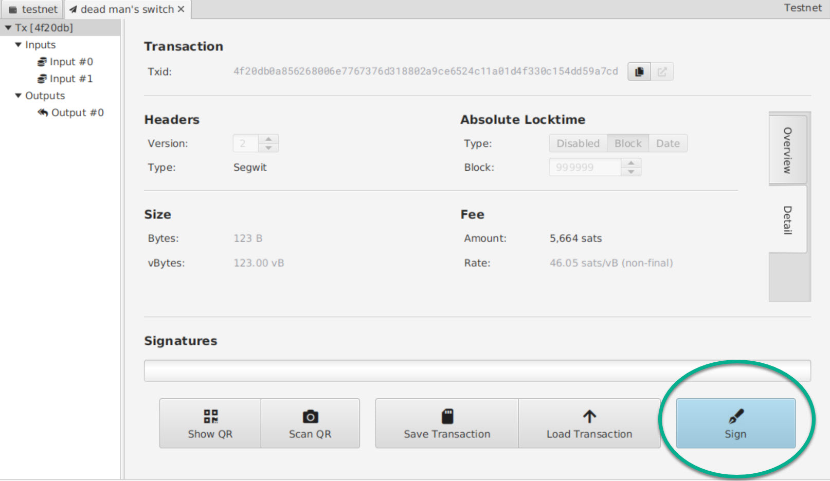 Now “Finalize Transaction for Signing” and click “Sign”.