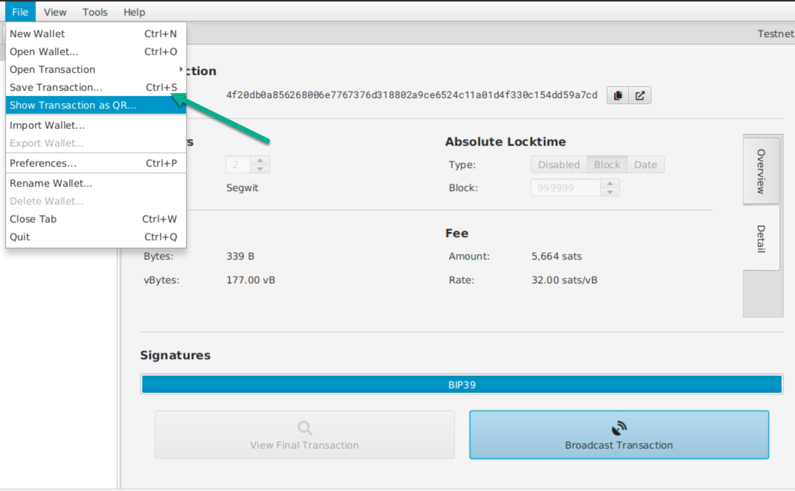 After that you can save the transaction as a Transaction file or a QR Code.