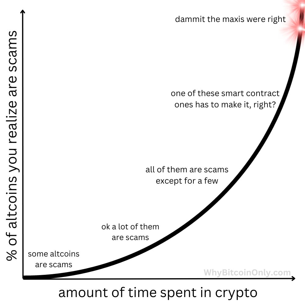 If you are new to the space, or still on the fence about whether there are other cryptocurrencies worth researching, pin WhyBitcoinOnly.com to your browser and start grinding your way through the content. It contains a wealth of information by the best educators in the space, and will help you learn the most important lessons very quickly, which many of us had to learn the hard way.