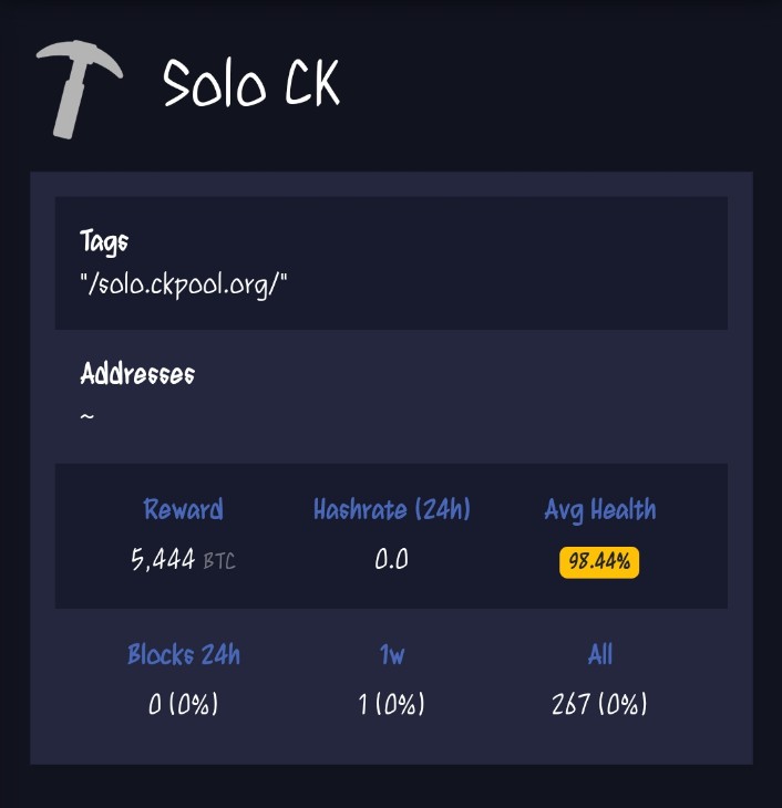 The chances of actually winning a Bitcoin block reward from a single rig is about one in 1.1 billion, according to one estimate. Hence the comparison to a lotto draw. SoloCK miners have snagged six blocks over the past six months and 257 over the past eight years.