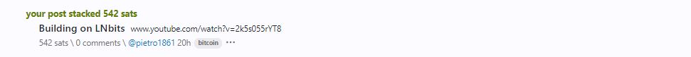 Yesterday my post stacked 542 sats as you can see from this snap: