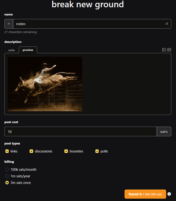 There is a founding new territory wave right now but I think that will die down. It should be cost prohibitive to create a sub otherwise you will have chaos and subs created for everything. I almost prefer you guys didn't offer the 100k sats/month option outside of the first 30 days. After 30 days you should have to decide if you want to commit for a year or not. Or maybe you even lower it to 50k sats for the first month as a trial so people can test their ideas but then make is 1M sats for a year if they want to keep going. Or possibly a 6 month option. 550k sats.