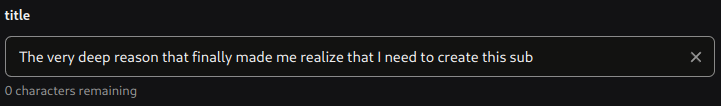 I just typed a title and it reached "0 characters remaining". This must be my destiny.