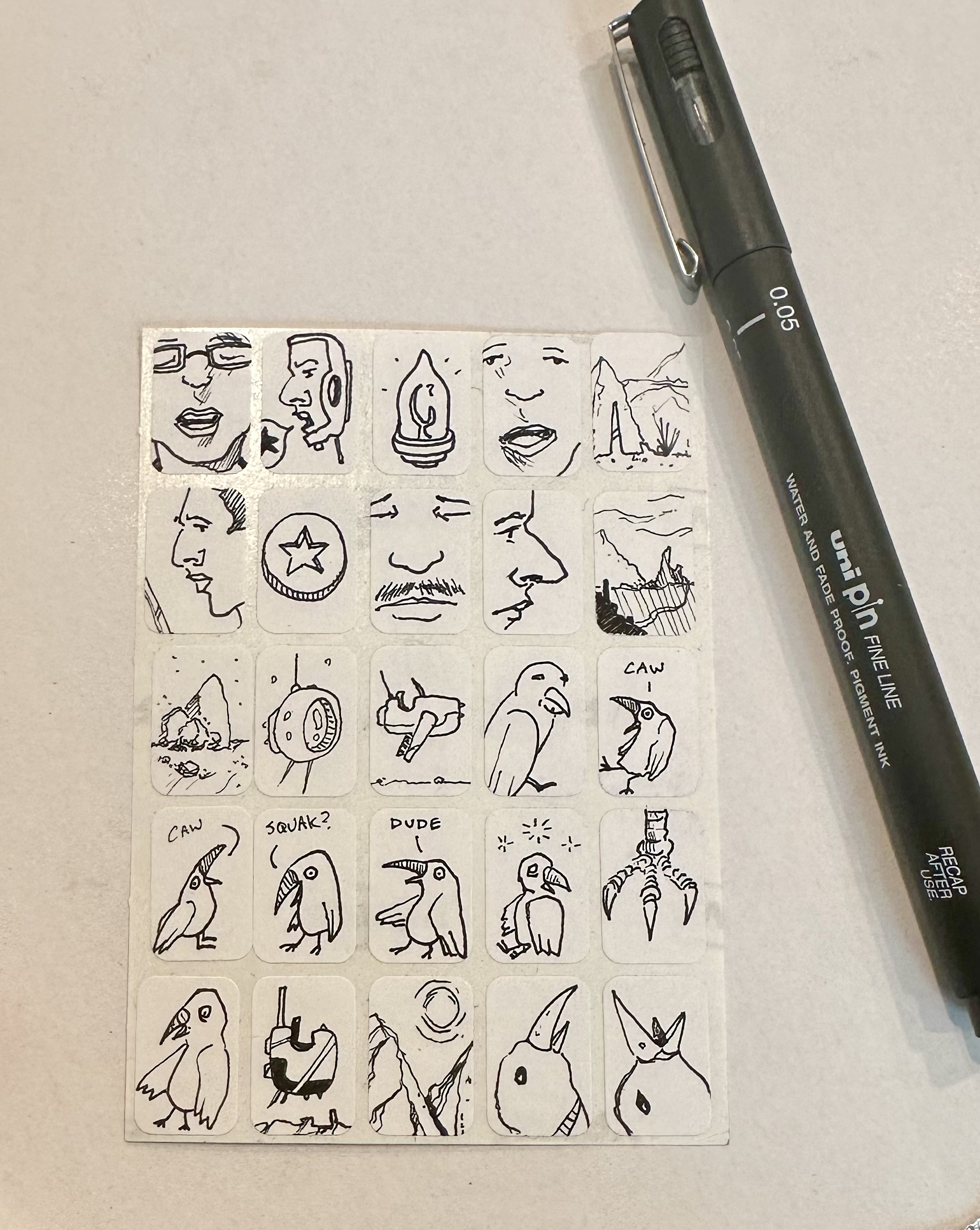Here’s a pad of stickers from my traveling sketchbook: