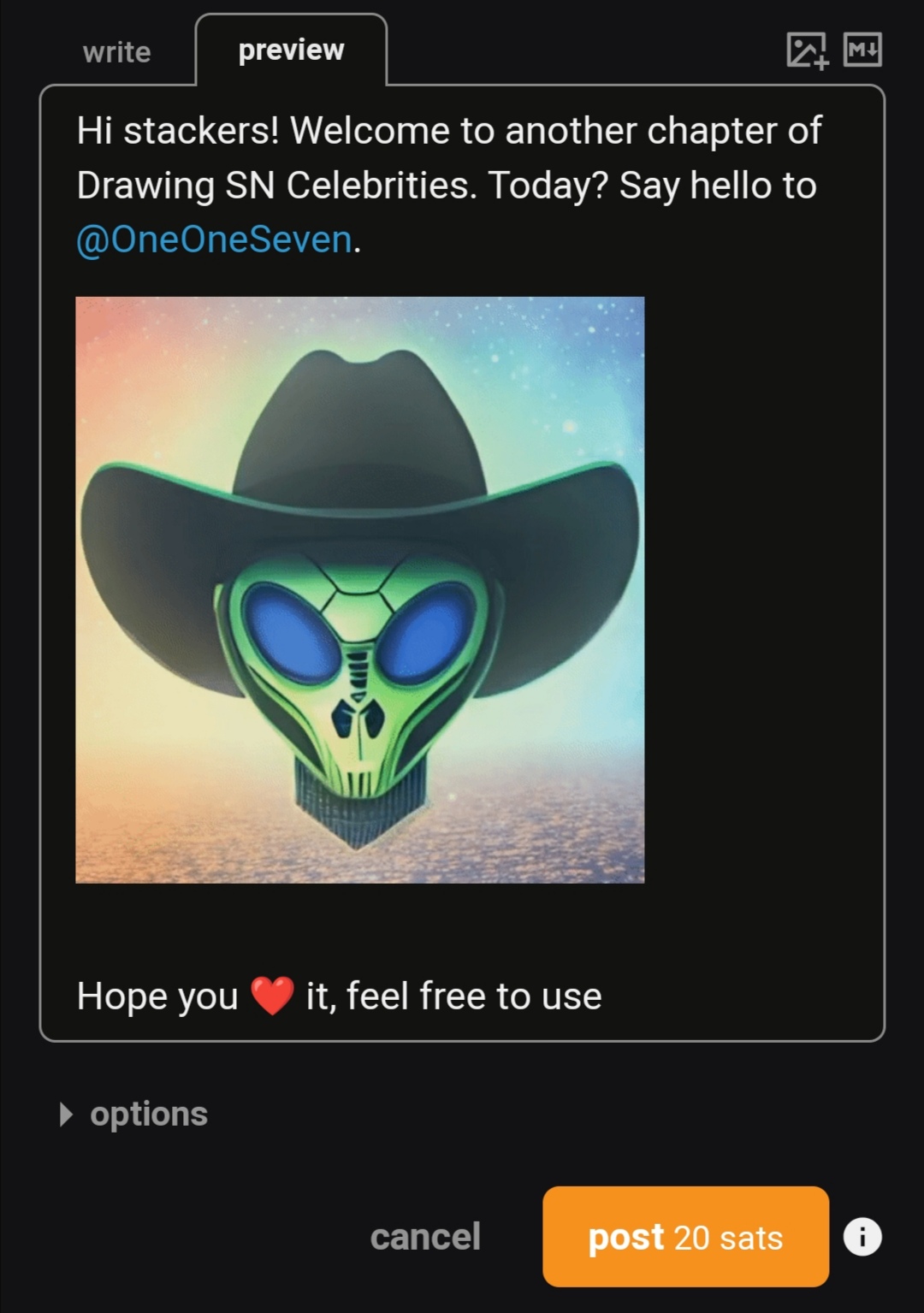 E.g. in ~art, cost is 20 sat but at the moment of clicking it rises to 200 sat 🤔
