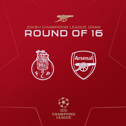 arsenal will have an extra tough time in February against fc porto in round of 16 to european champions league.