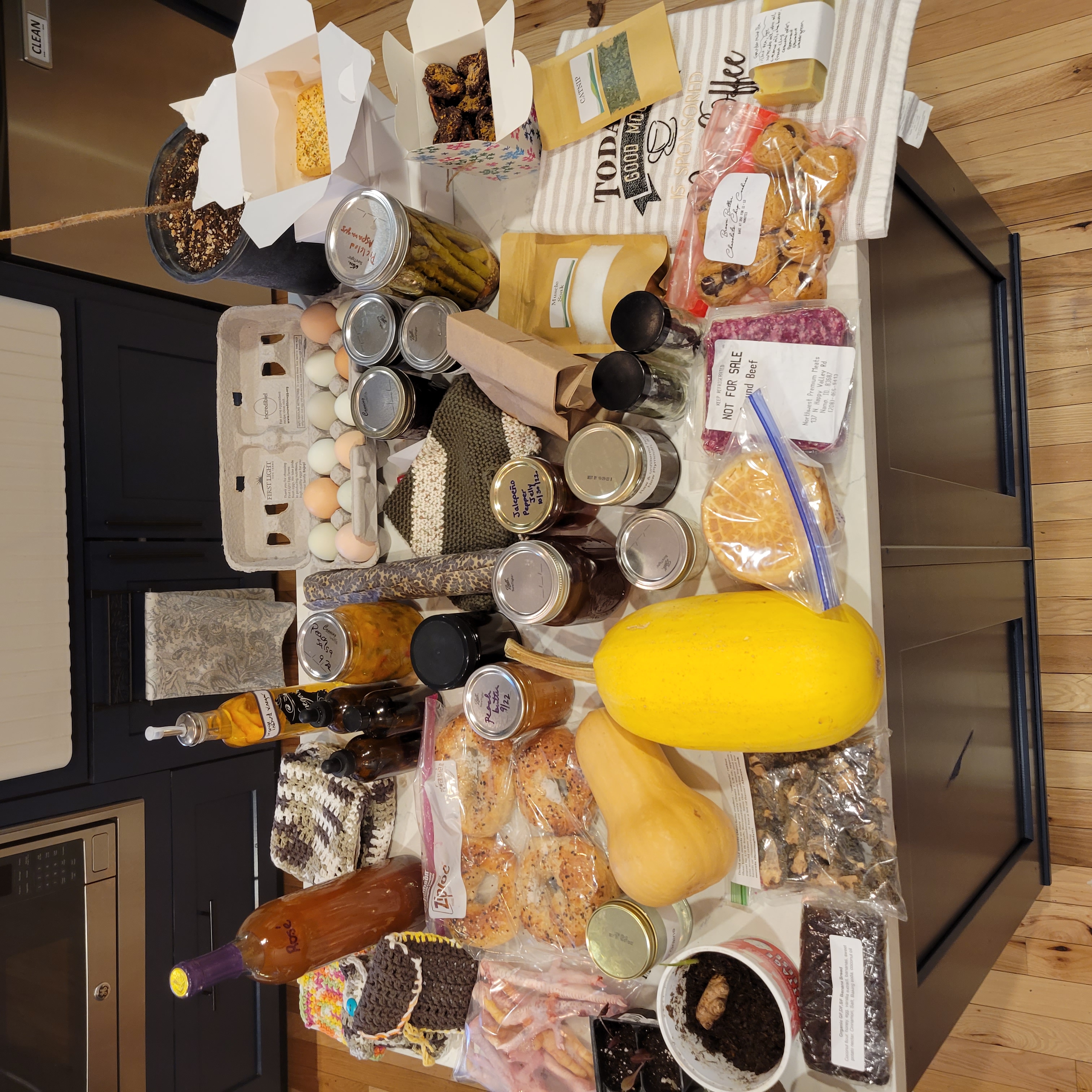 (Pictures of what we come back home with after every market)
