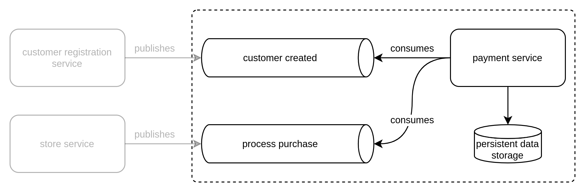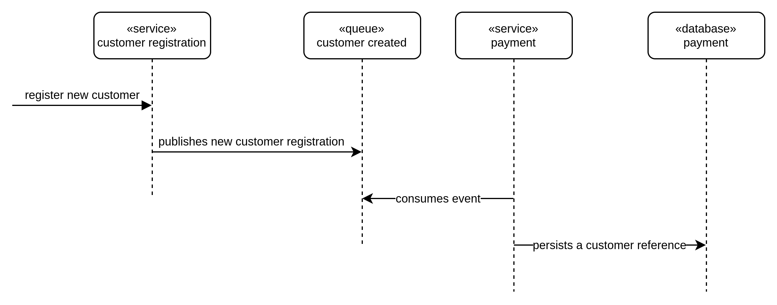 SCENARIO: A set of applications with asynchronous customer registration and purchase payment processing services.