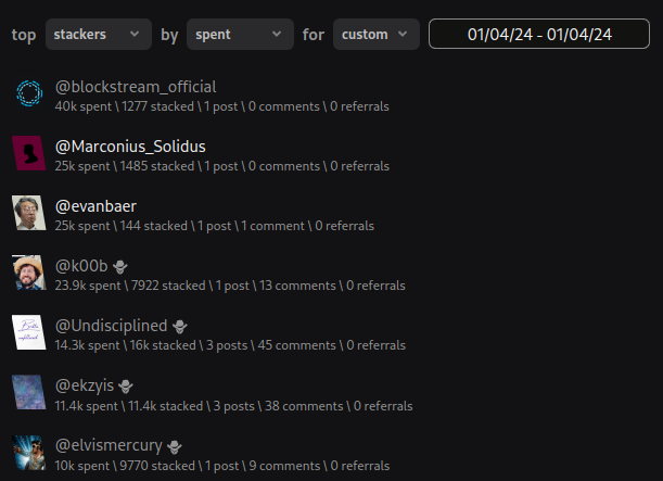 | Date | Spent | Stacked (Rewards) | Posts | Comments |