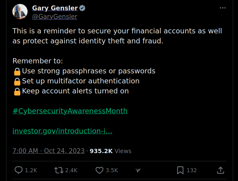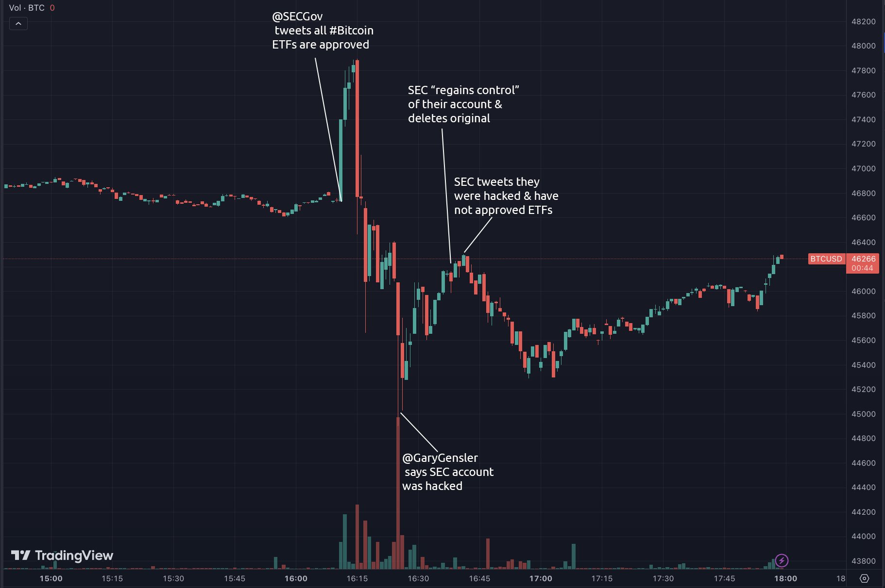 Something really odd happened. The price of bitcoin fall before Gary Gensler post about the hack. In fact the price recovered after his post tille there is a second regain and post about the hack.