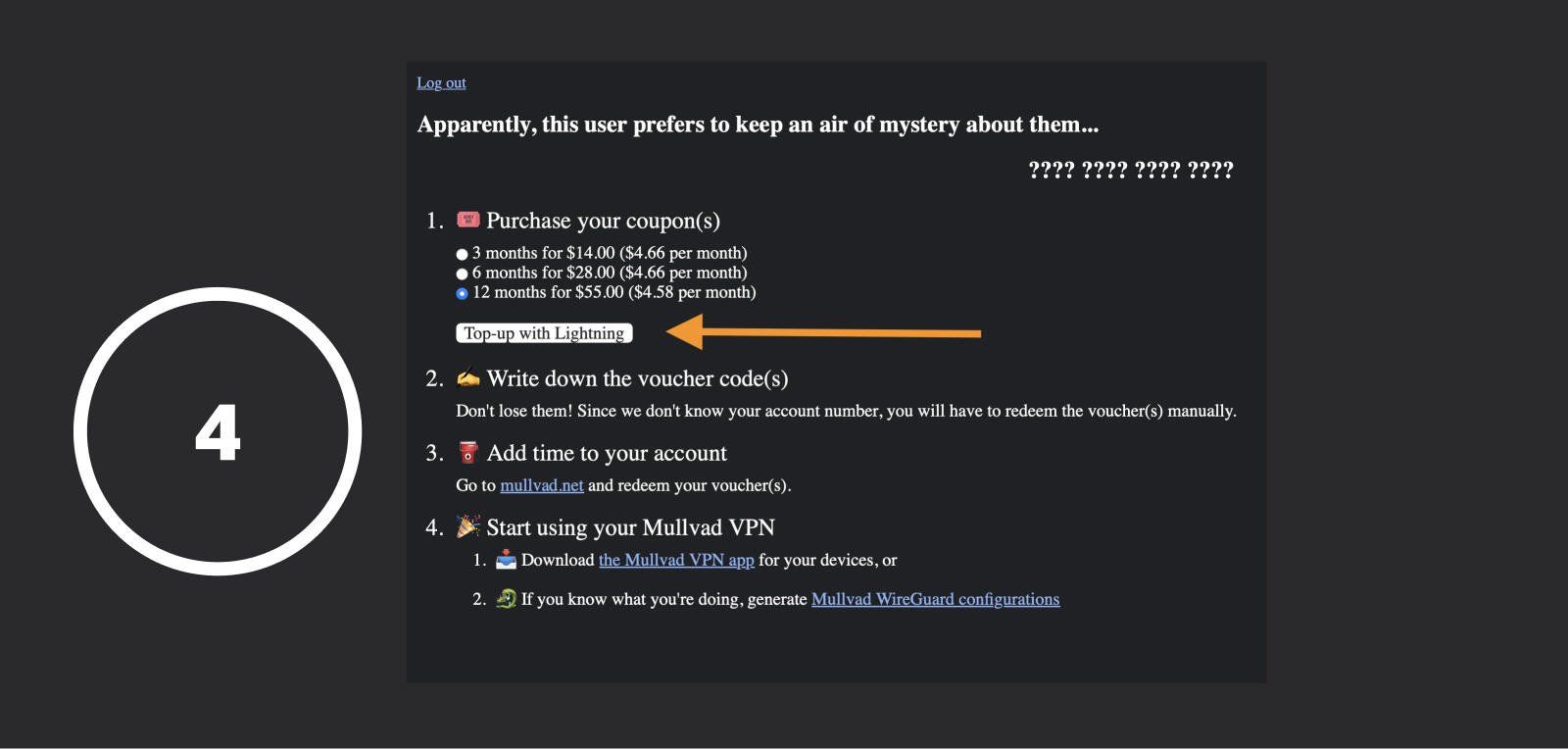 - Buy vouchers without credit card or personal information, using an external site not run by Mullvad, we can buy Mullvad vouchers over LN ⚡