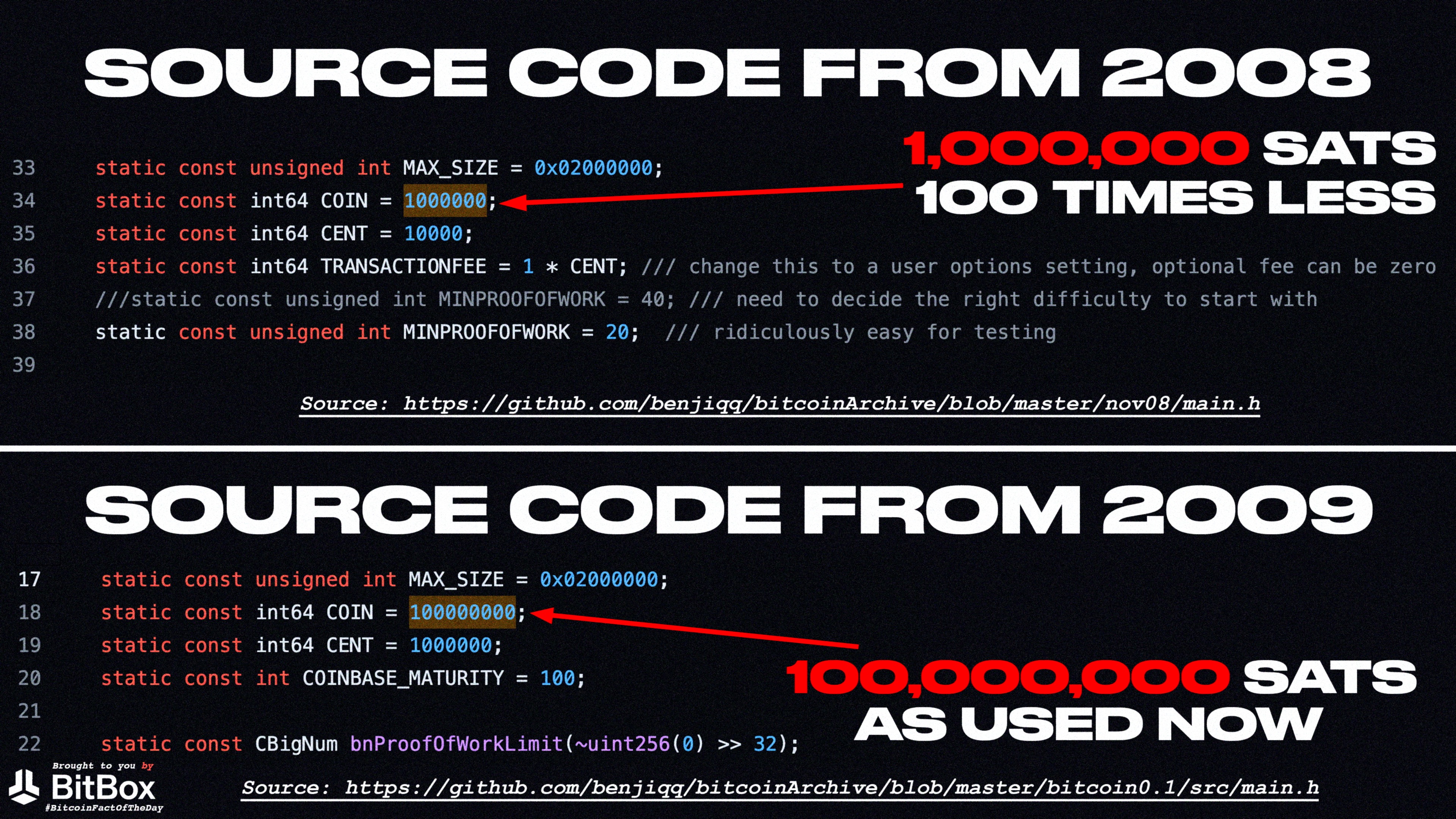 One thing that was different in this version was how many sats is 1 Bitcoin.