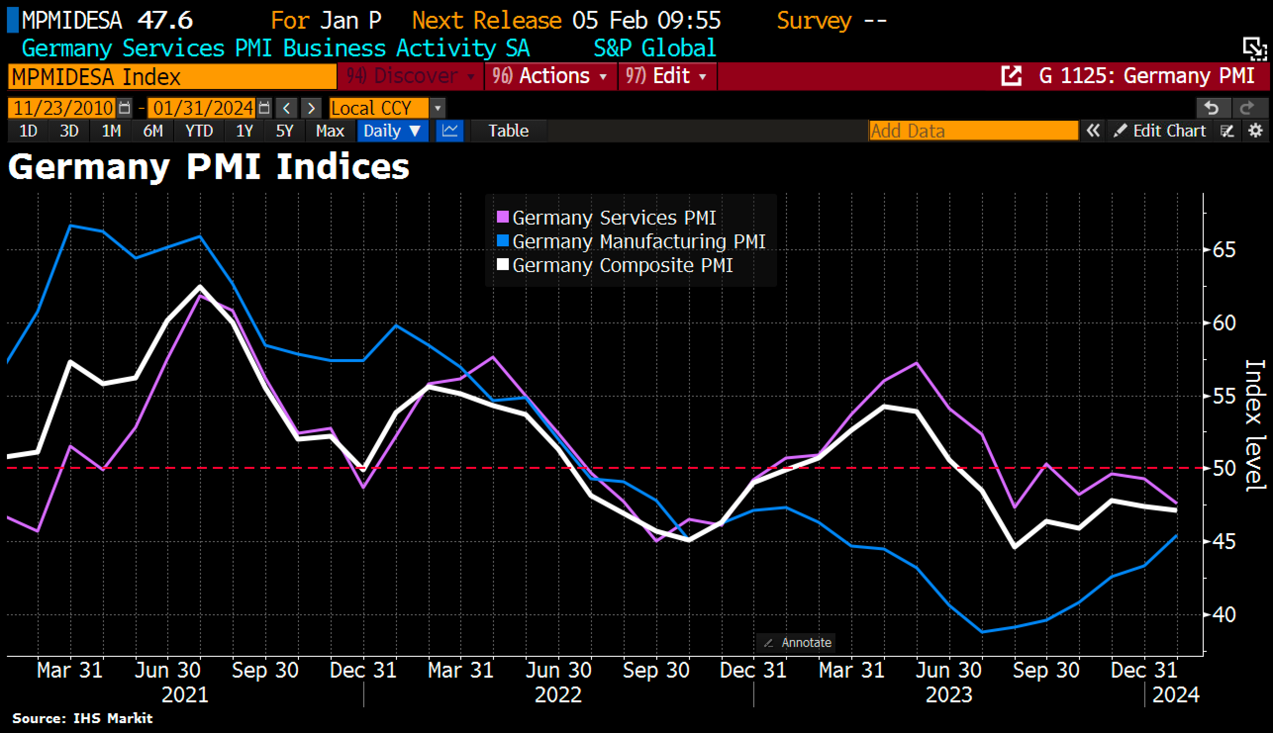 In January, the German economy continued its descent, marking the seventh consecutive month in recession territory. According to the latest data from S&P Global, the composite index for private sector production, encompassing both industry and services, dropped from 47.4 to 47.1 points. A value below 50 indicates economic contraction, emphasizing the persistent challenges.