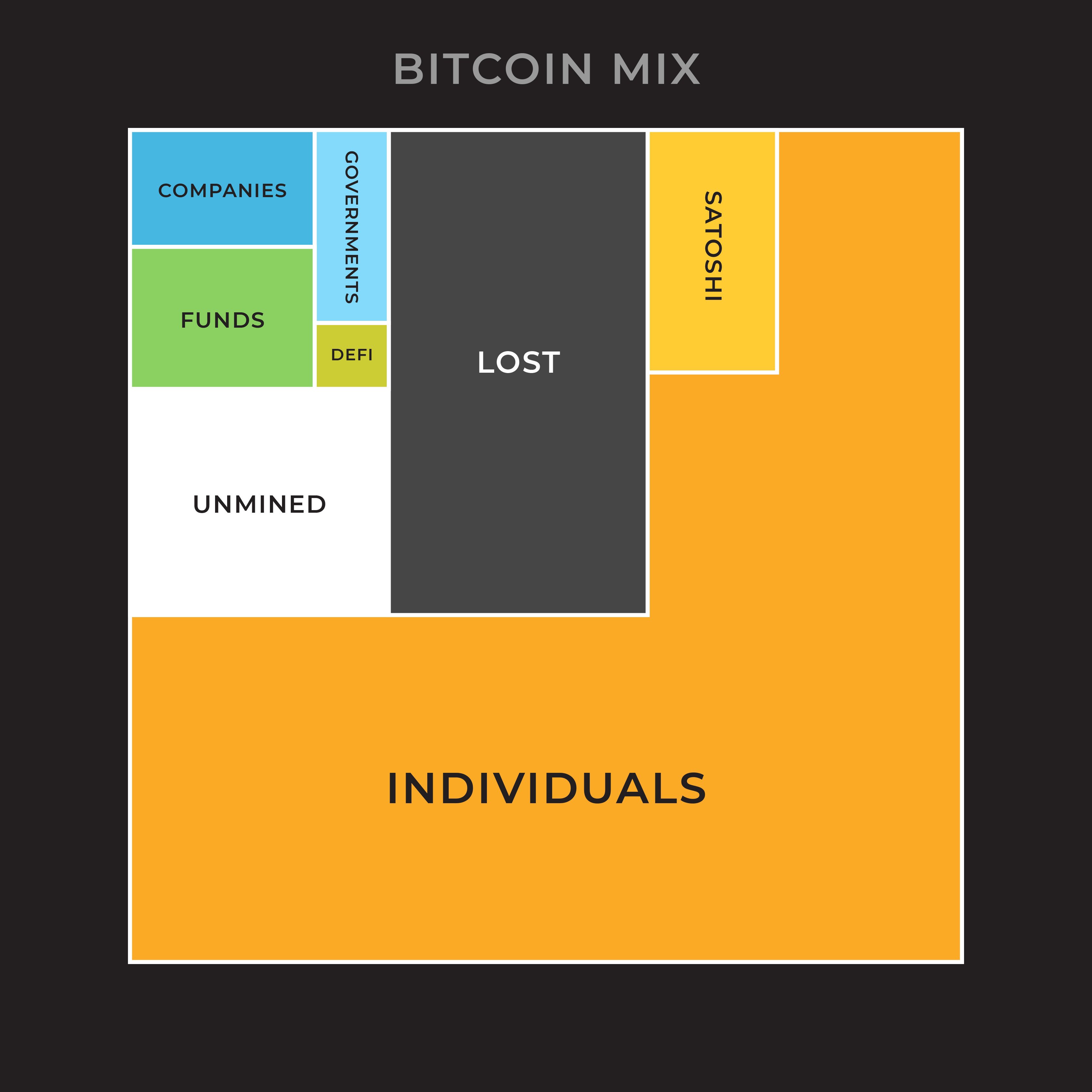 I guess only future will tell. In that individuals, you also have all the btc that traders, swingers and day trader speculate with… and that, i wonder how much that represent… when you see the volume each big liquidation we had a couple weeks ago brought, you would assume it’s a massive amount of btc. Also in companies, you have the mining companies that have to sell btc to cover their expenses… and will always have to cover… so obviously as price rise that will tend to decrease but shouldn t be forgotten in the equation