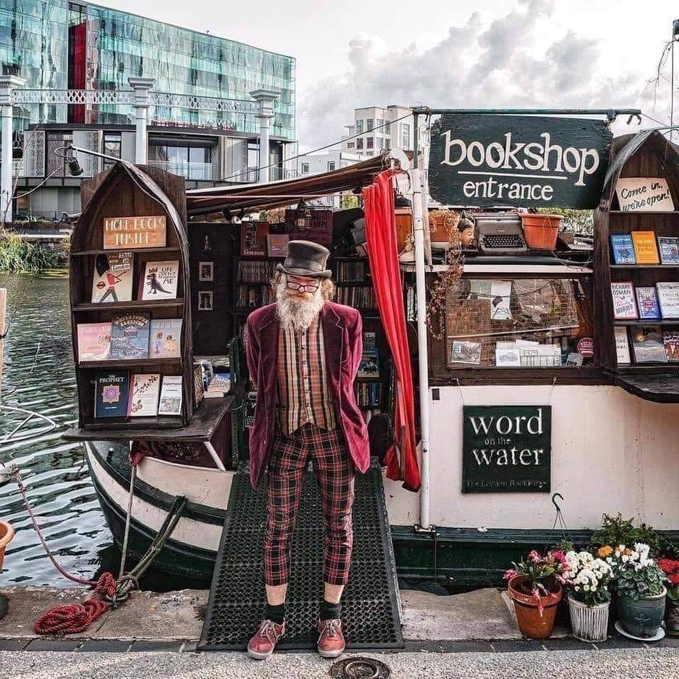 This isn't on the Thames — it's on Regent's Canal. But a brilliant bookshop nonetheless and well worth a visit for anyone visiting London! There's an art boat that moors up alongside him sometimes as well.