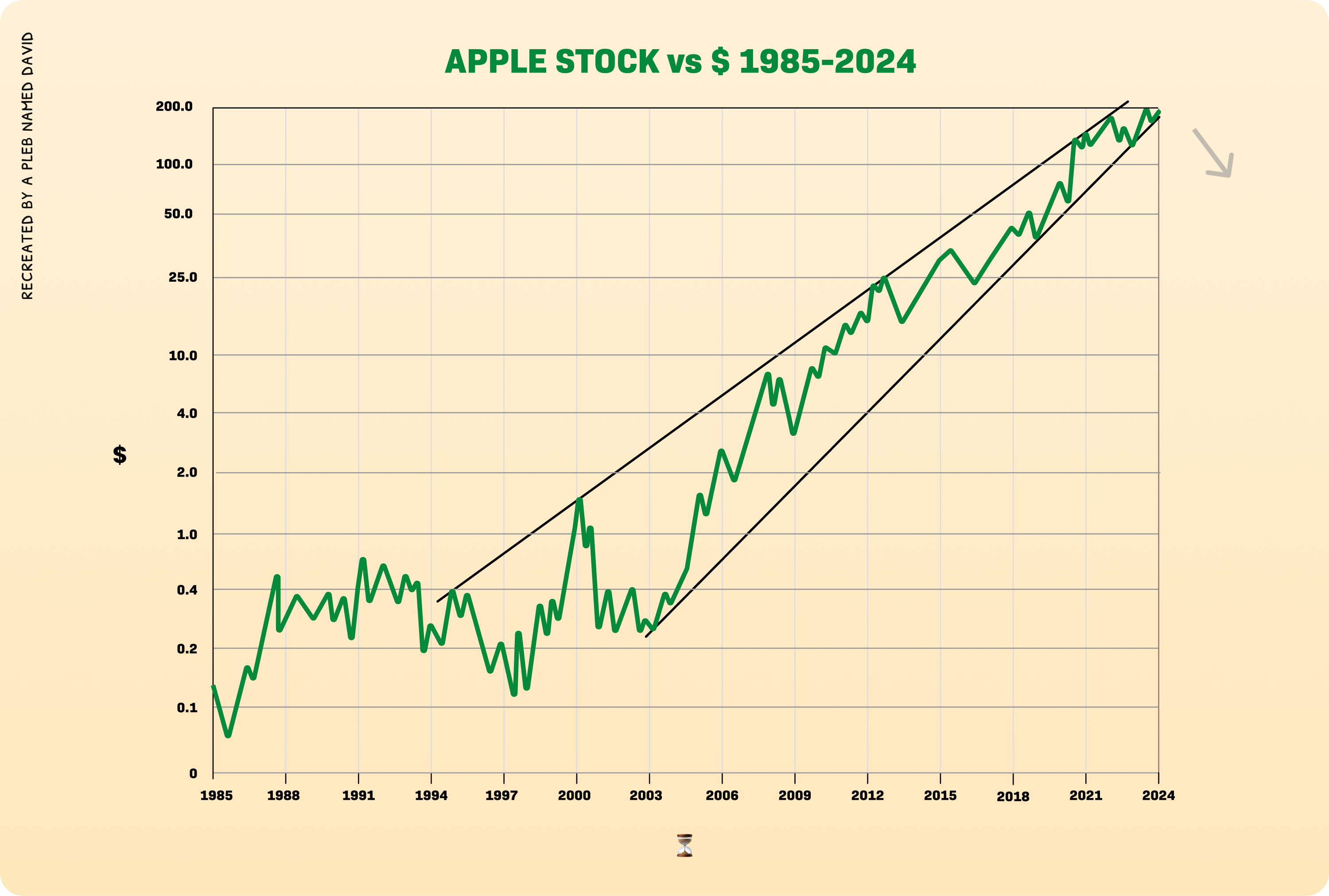 The Bitcoin price chart looked like other rising wedges witnessed in prior maturing assets, with an extremely sharp and rapid appreciation between 2035 and 2038. It reminded many people who study markets of the likes of Apple, Amazon, Exxon, Boeing, Microsoft and others from prior decades.