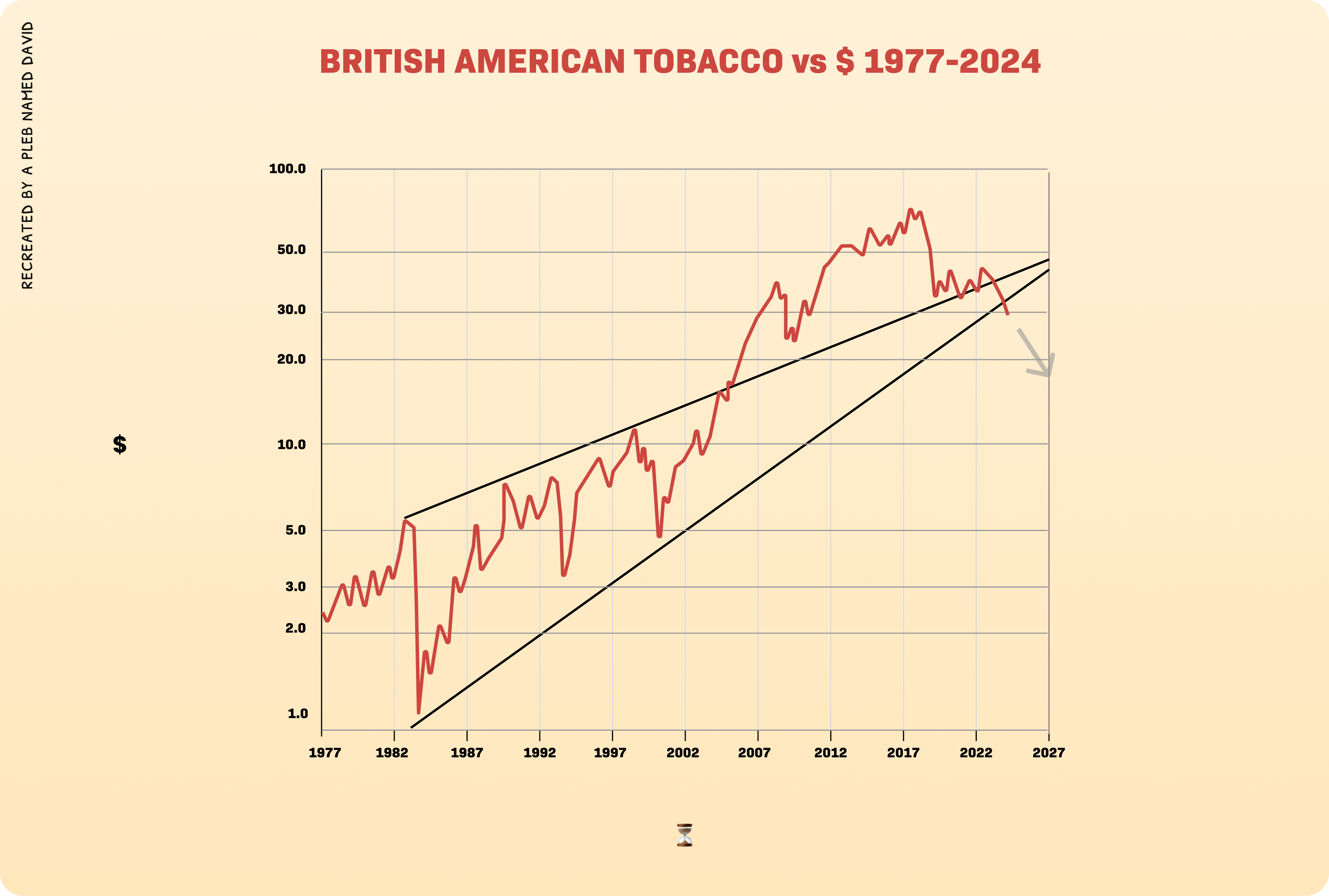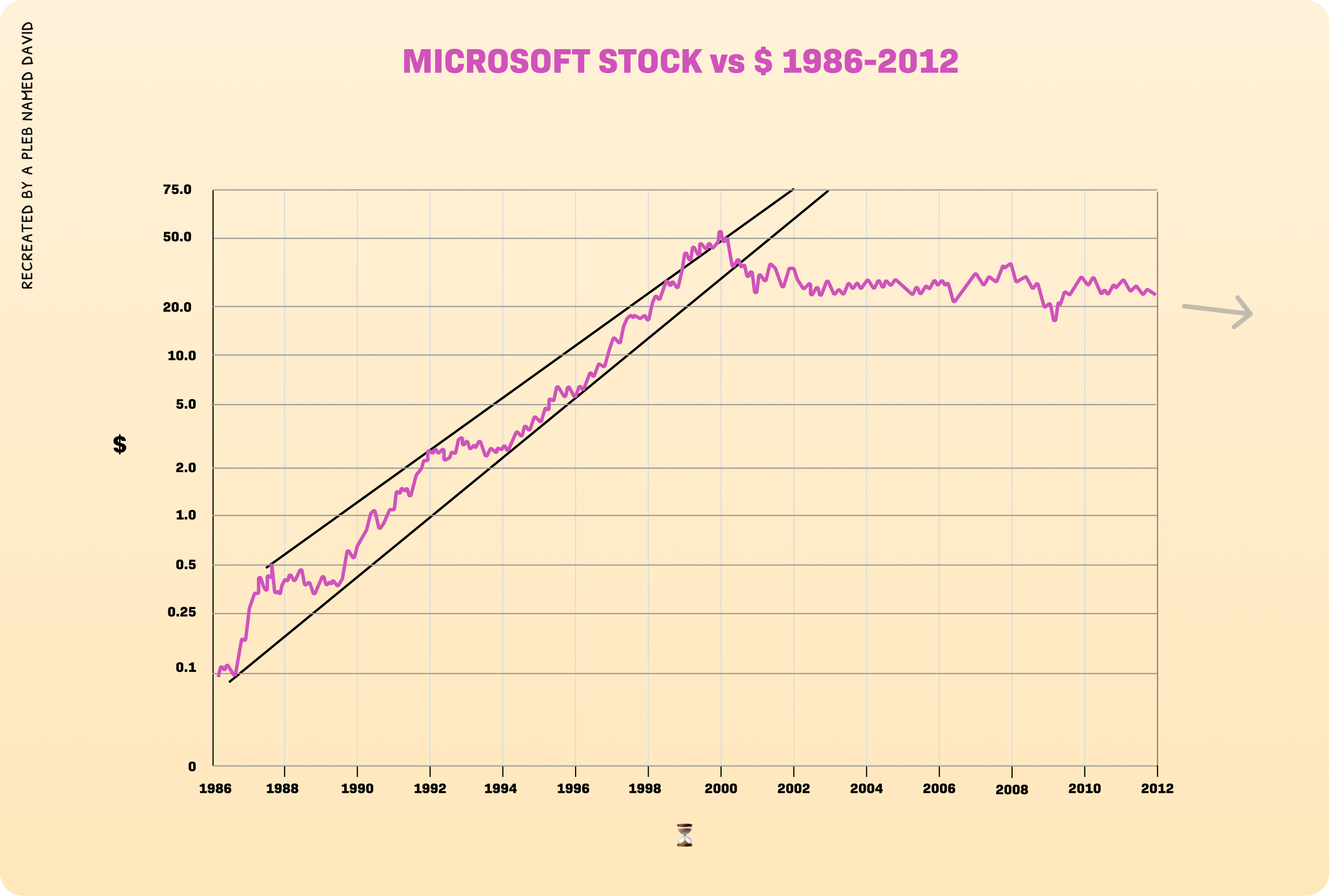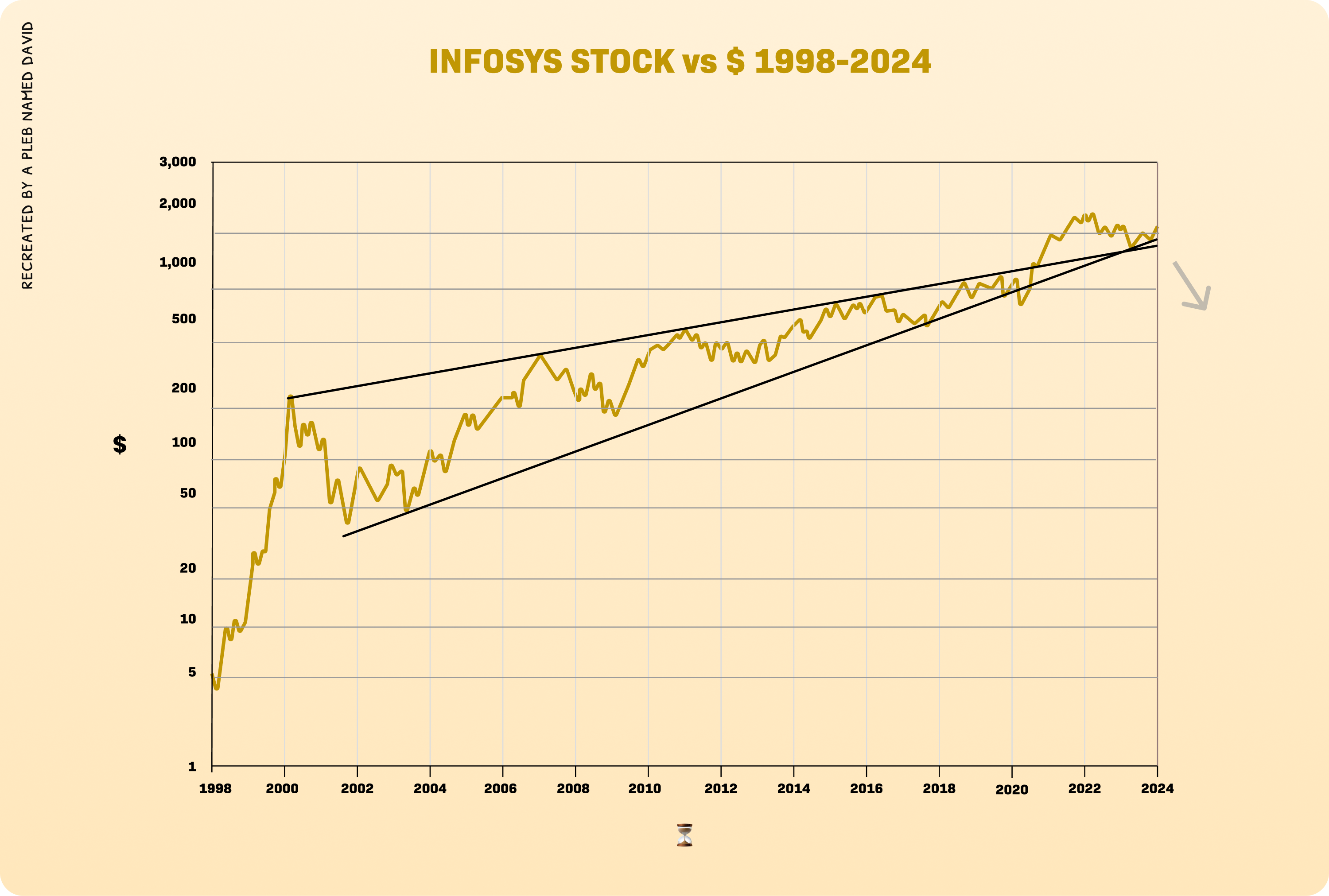 In the case of Microsoft, Infosys, British American Tobacco & Infosys, assets that are in an exponential trend when priced in flawed-fiat terms sometimes overshoot above the wedge before due to exuberance, before running out of momentum.