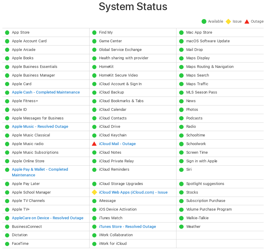 iCloud Mail is down