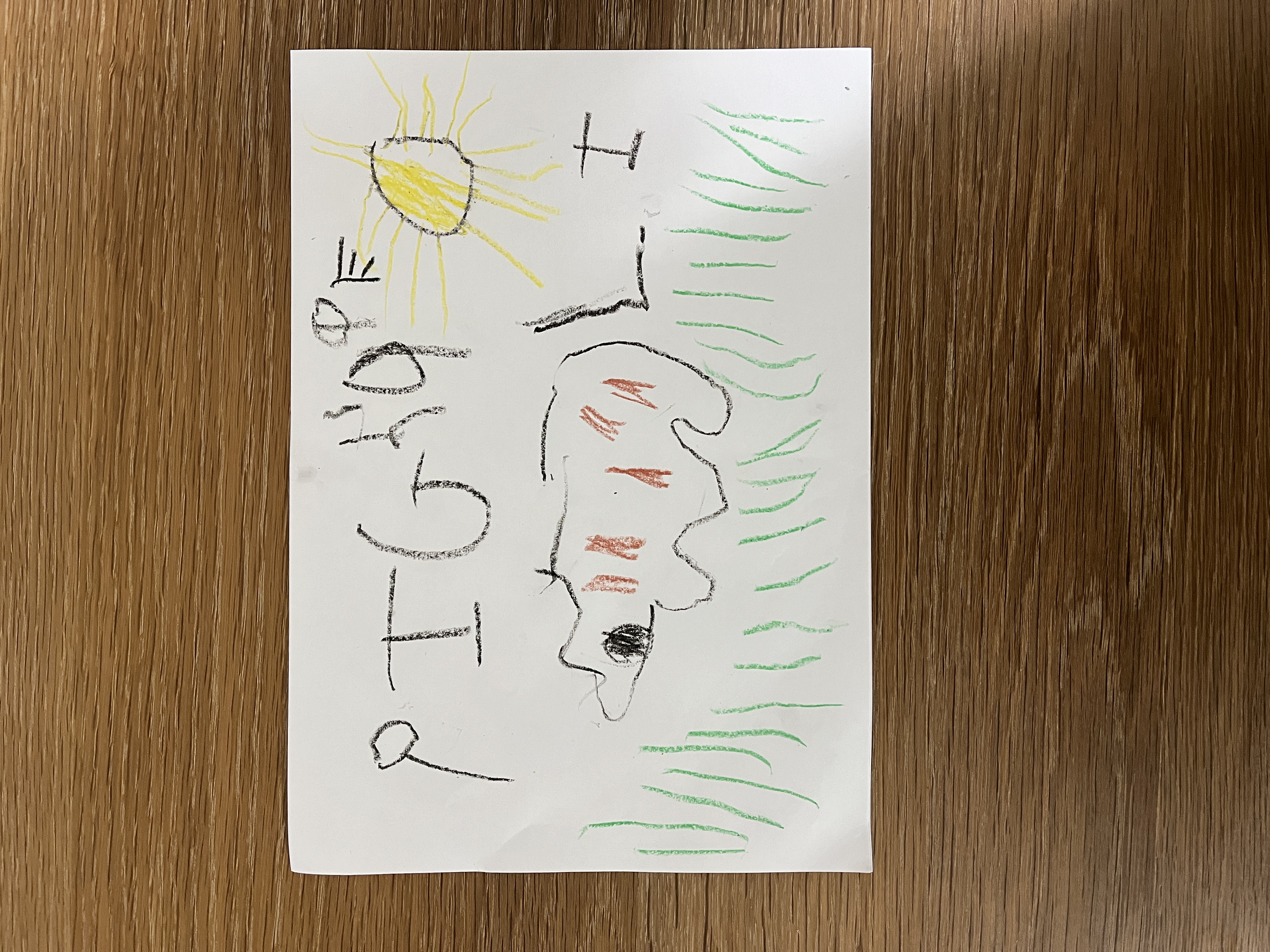 My son is into drawing these days. For one of his drawings, he wanted to spell my name that consists of the letter L. I guess he wants to dedicate it to me.