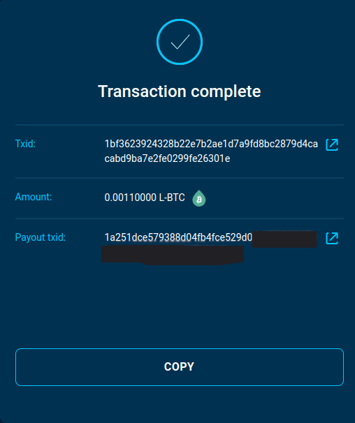 | Post-Swap: L-BTC | 129180 sat | 12656 sat |