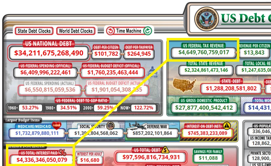 american tax revenue is now just enough to service the debt. in other words, the government is bankrupt! they will have to cut interest rates and fire up the money pump to avoid chaos. golden times for hard assets!