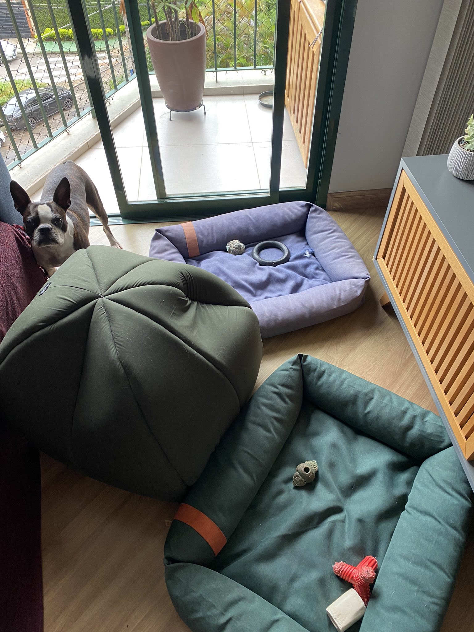 Yes, the neighbor's dog has three beds and one is in each of his favorite.