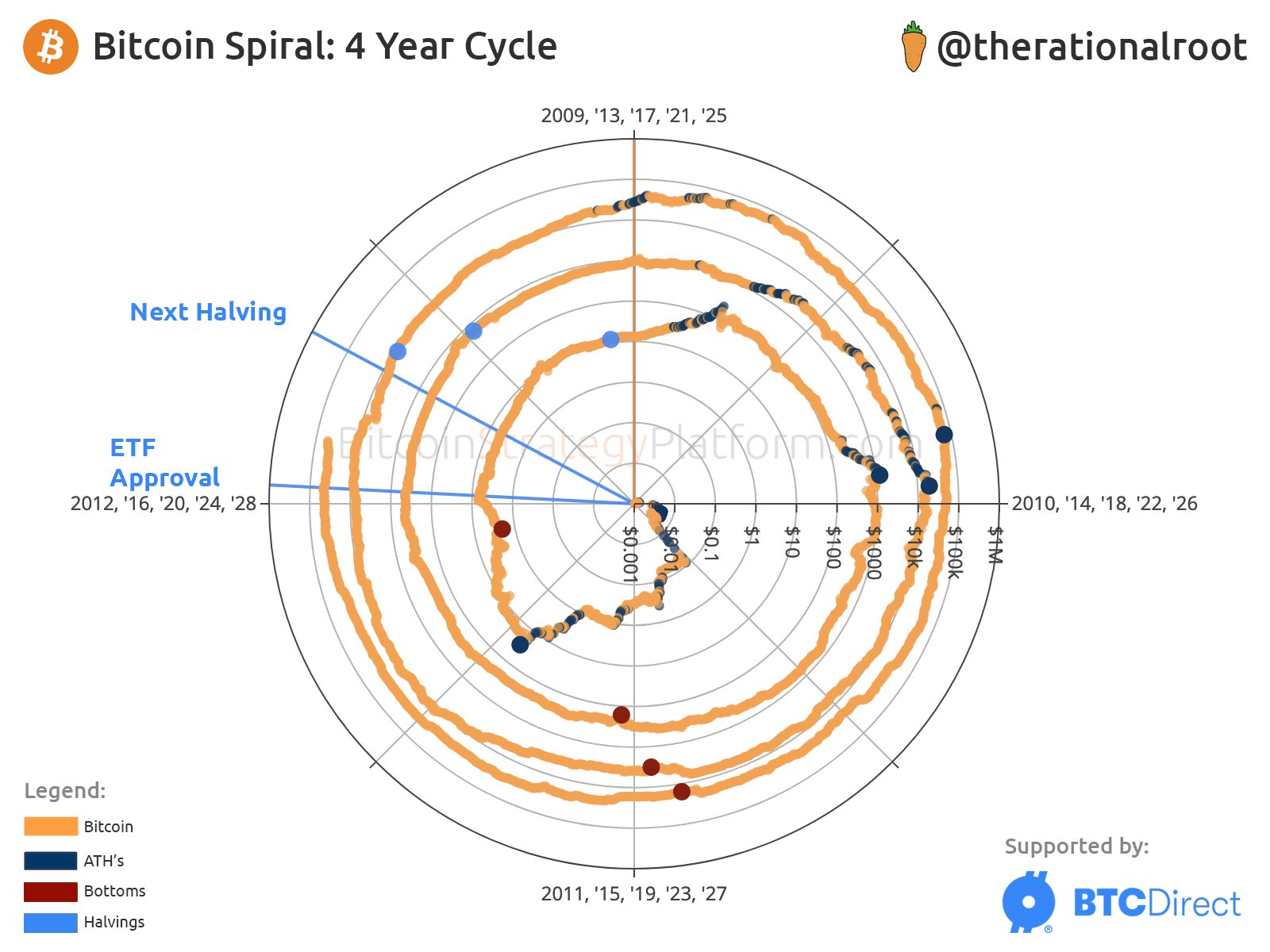 Bitcoin Spiral shows how the 4 years of the Halving Cycle play against each other