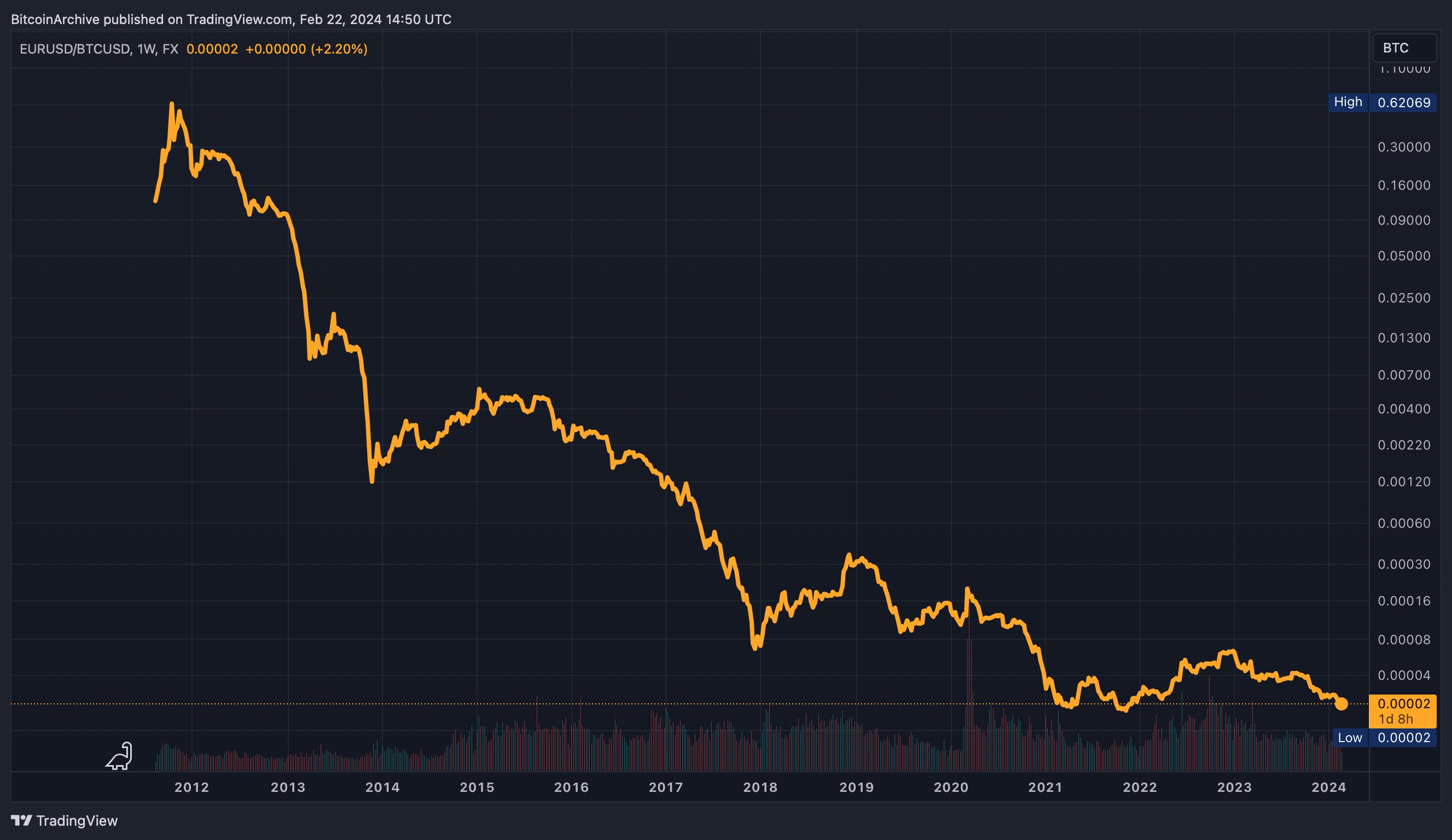 This year, the ECB is celebrating 25 years of the euro. Politicians and officials of this dubious institution are probably the only ones in a celebratory mood, however, after the junk currency has lost 50% of its purchasing power in the short time it has been in existence. Well, printing money and financing debt with the printing press have their price! Incidentally, the junk currency lost 70% of its value against gold and 99.5% against Bitcoin, which, according to the officials of this 'bank', has no intrinsic value. A successful model for those who use it to get rid of their debts at the expense of the general public.