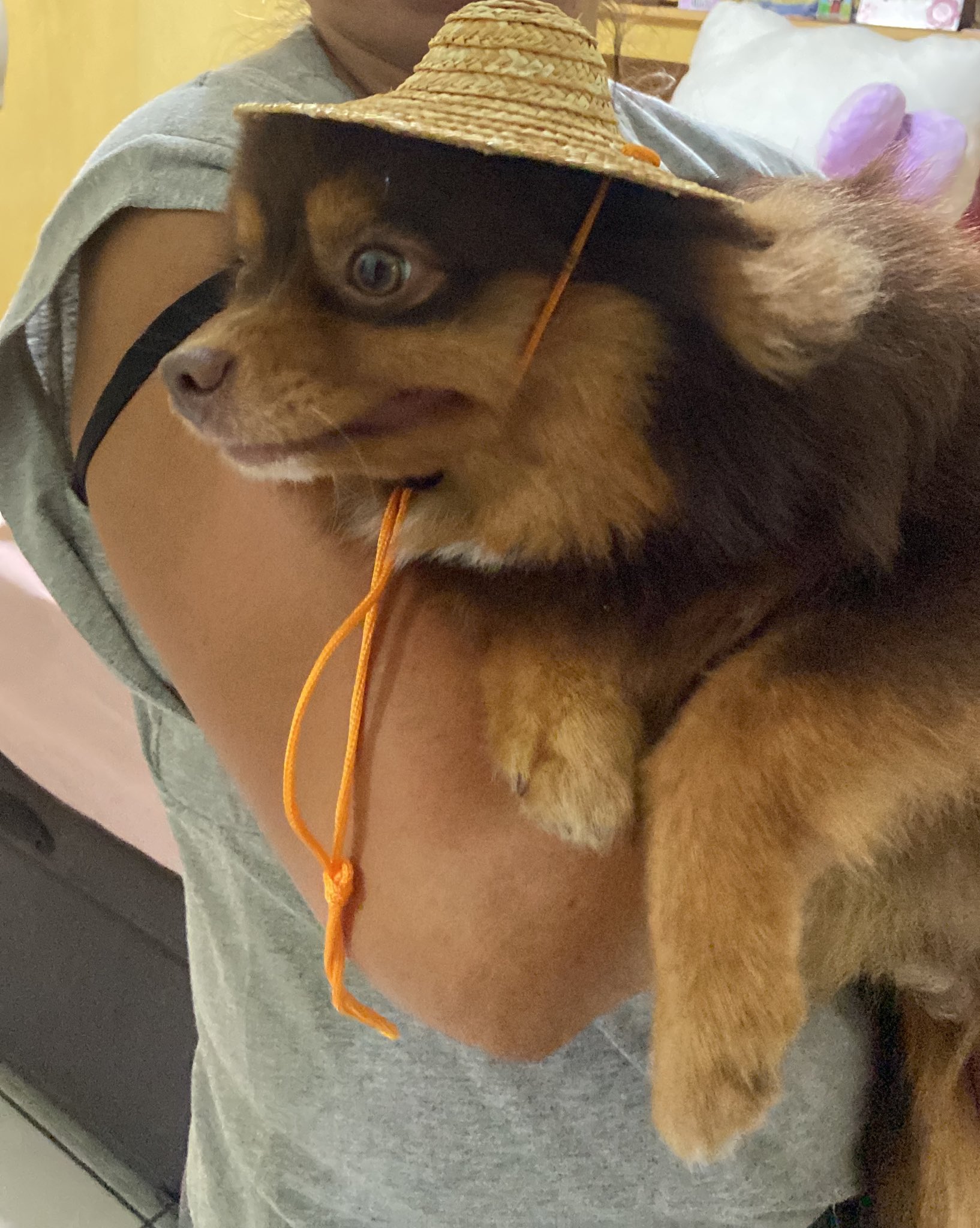 If you want to play 'dress-ups', buy a doll. Animals, including pets, aren't there for you to indulge your fancies on. Animals get nothing out of having hats & clothes put on them, and probably experience some discomfort.