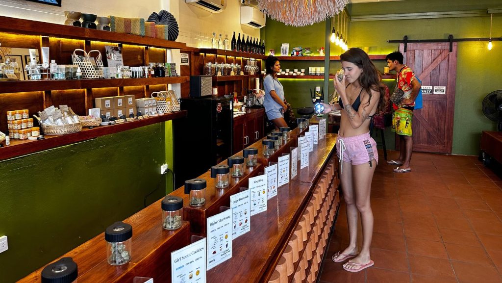 That doesn't mean you don't find concentrates there. Many dispensaries have some options available, but they are not displayed. You have to ask the sellers, and many give you a hard time. It is also difficult to find high-quality concentrates. She managed to buy a few grams of temple ball-shaped hashish — around 800 baht for two grams. Flowers cost between 700 and 1,000 baht per gram.