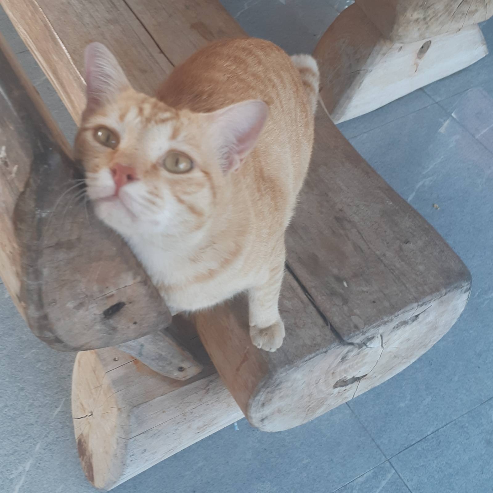 I can never see orange and not make a connection to a certain decentralized global payment network and this being an orange cat climbing around our picnic table, I called out "Satoshi", and he looked straight up at me and I snapped this picture. I am more of a dog person myself, but I confess I have taken a liking to our regular visitor.
