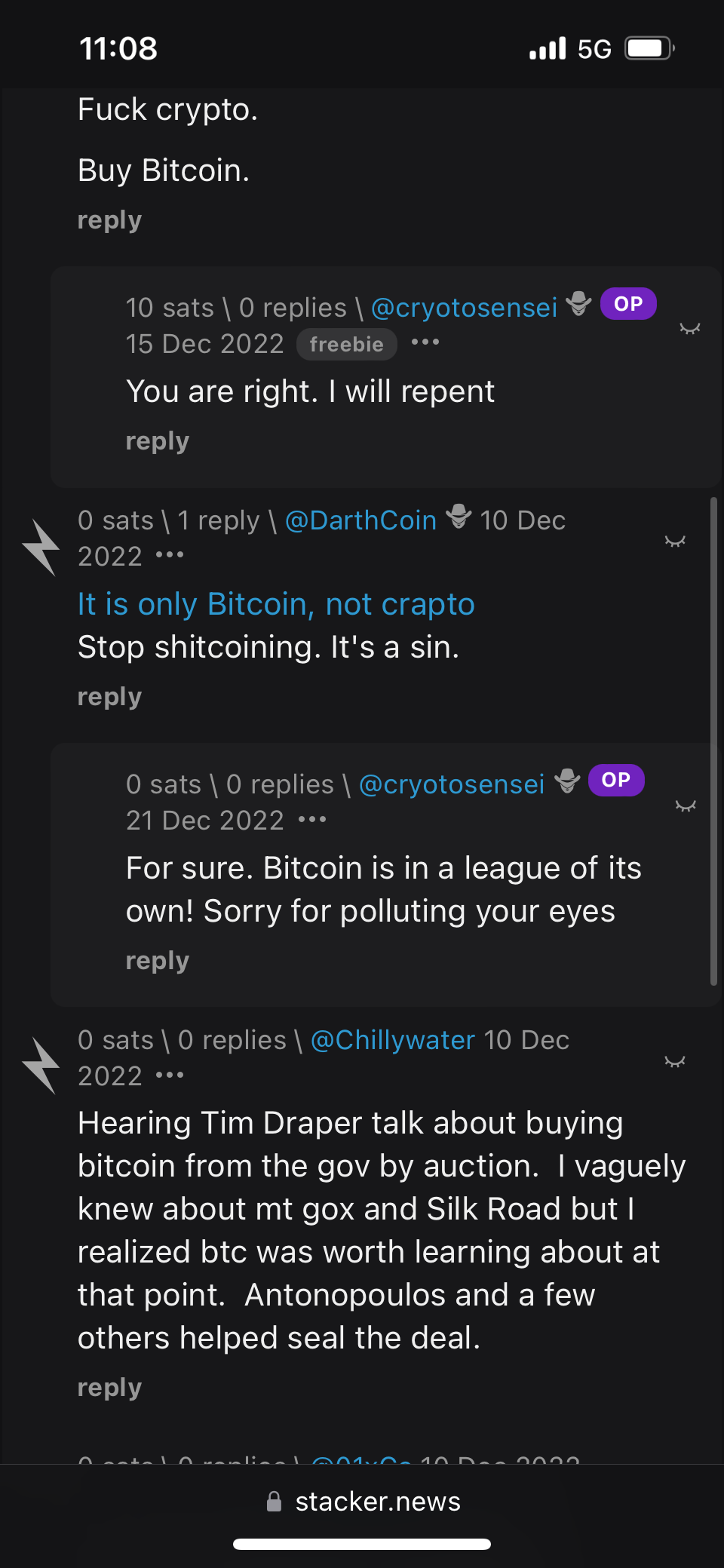 It was a throwaway comment said in jest, but it netted me 10 sats. Which was enough to give me a second wind on this platform.
