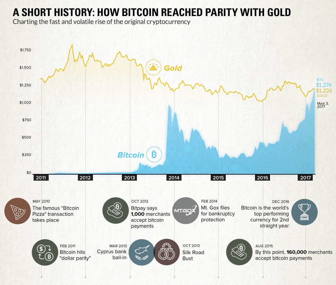 For some, this date is wrong, and it is! Bitcoin also reach gold price back in December 5th, 2013, the data was poorly analyzed, and no much people realize it at that time.