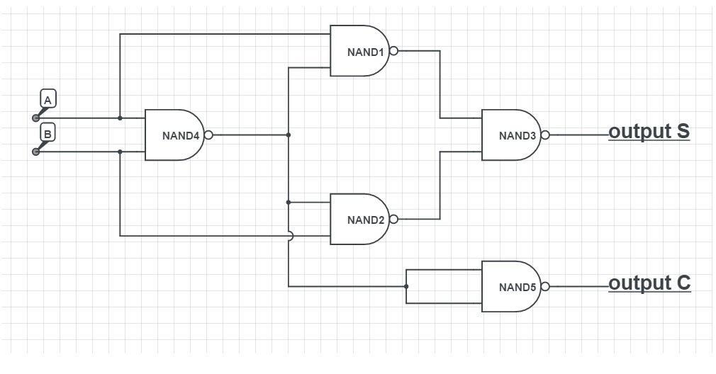 You can configure NAND gates (U3B and U3C) as your inverters for high output generation.