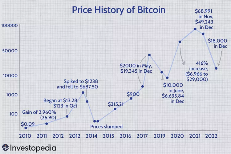 Read more here: https://www.investopedia.com/articles/forex/121815/bitcoins-price-history.asp