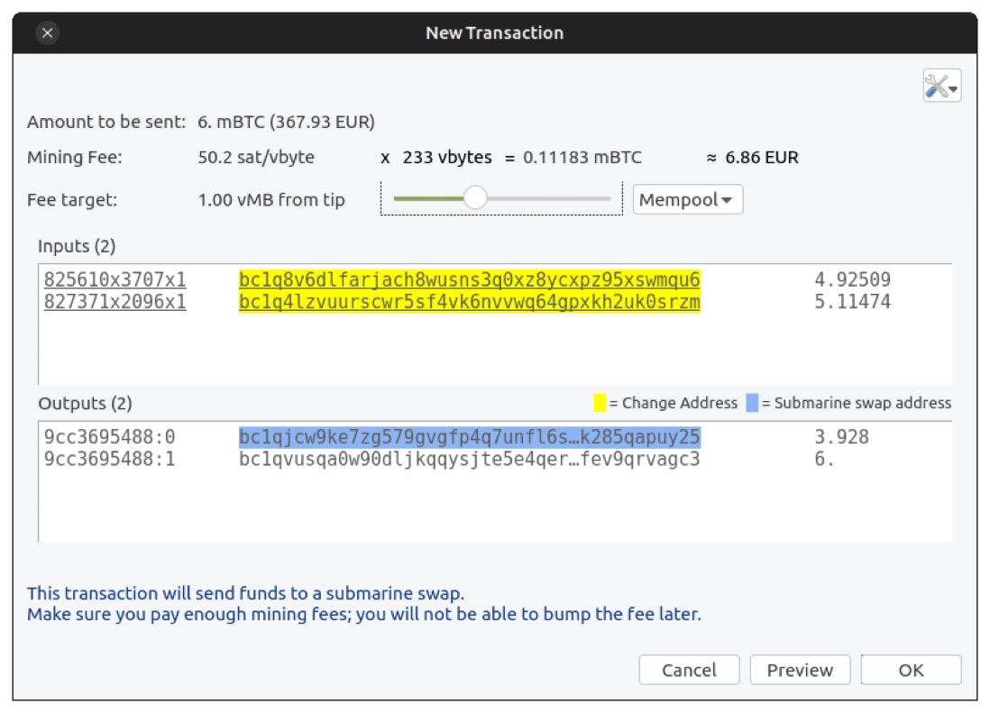 All BTC change addresses should be used to swap into a lightning channel.