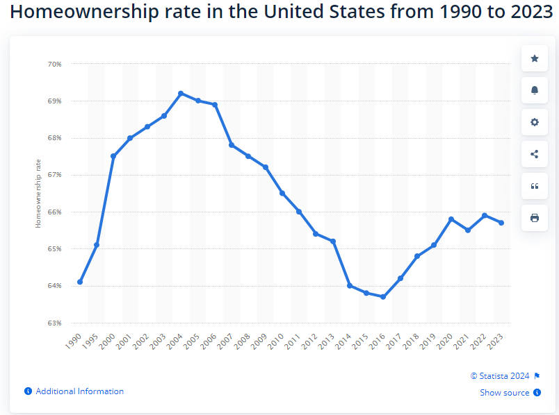https://m.stacker.news/19200 https://www.statista.com/statistics/184902/homeownership-rate-in-the-us-since-2003/